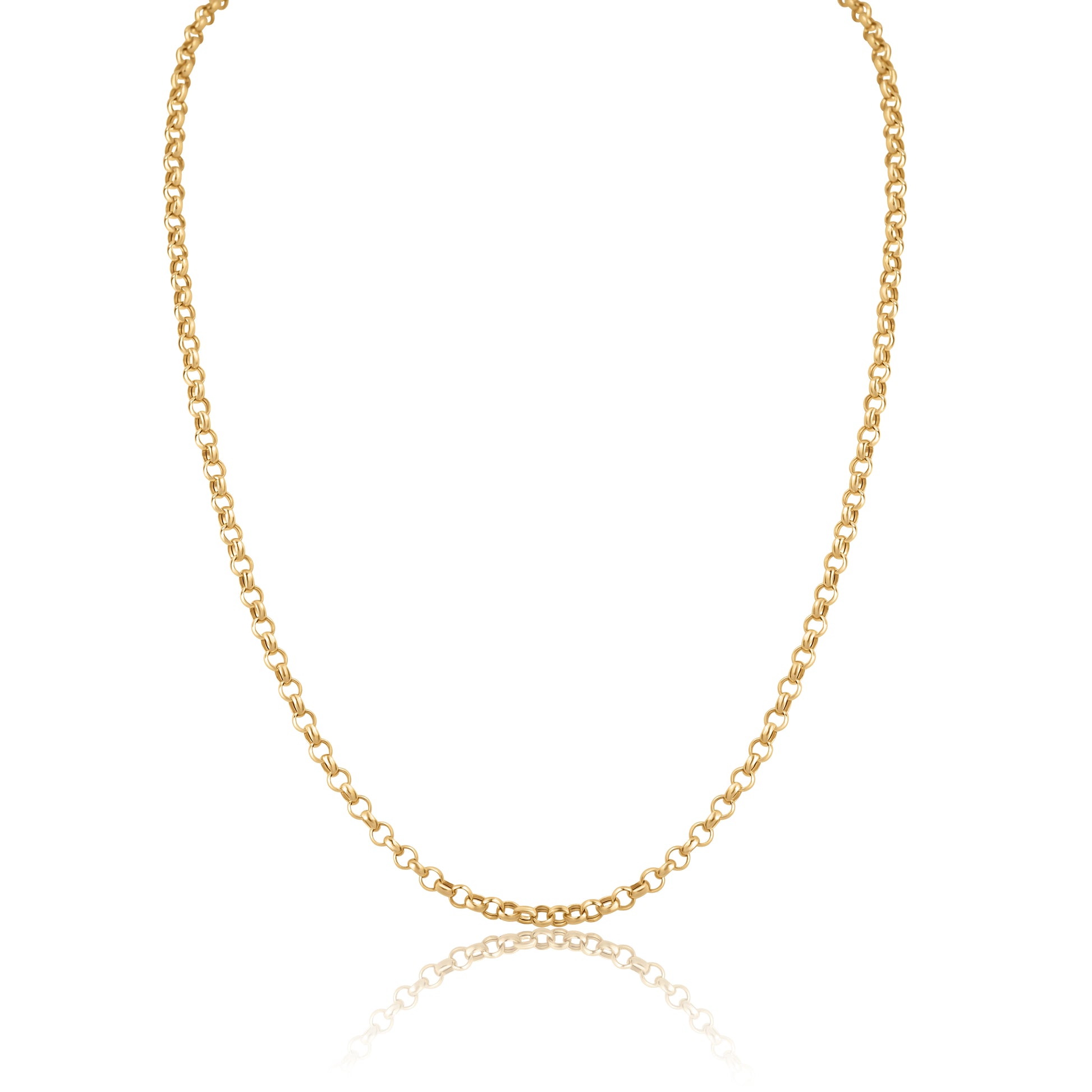 Elevate your jewelry collection with this refined 14k yellow gold cable chain, crafted with a substantial 3.5mm thickness that commands attention. The classic rolo design offers versatile styling—wear it solo for understated elegance or layer it with complementary pieces for a curated look.