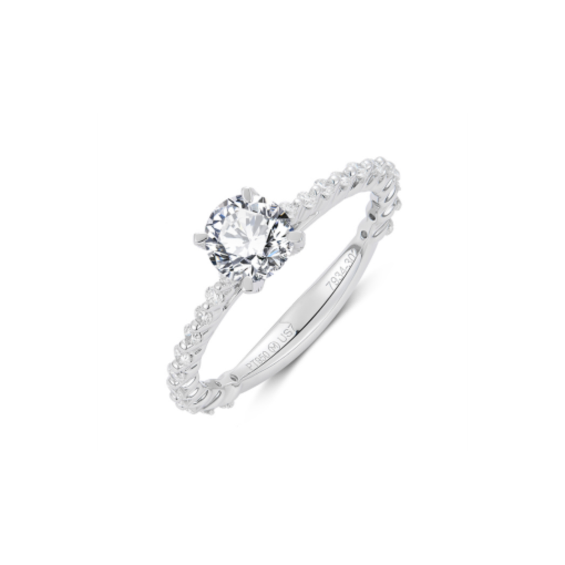 Introducing the Laurie Engagement Ring, a timeless symbol of elegance crafted in 14K white gold. This sophisticated piece features a stunning .46-carat natural diamond center stone, complemented by .05 carats of accent diamonds delicately set throughout the band and setting. The refined design showcases the brilliance of natural diamonds while maintaining a graceful, understated aesthetic.
