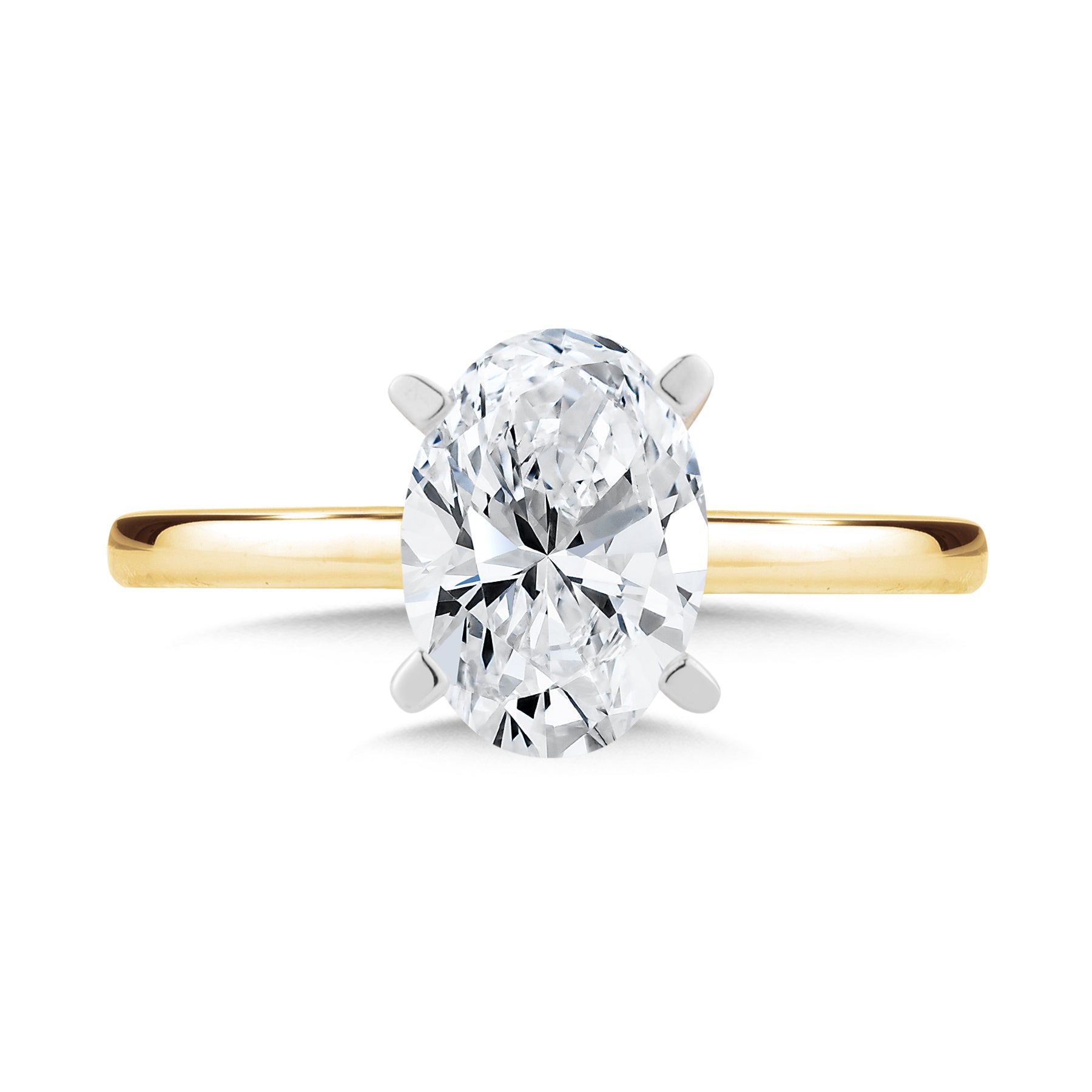 Discover the elegance of a lab-grown engagement ring featuring a stunning 1-carat oval cut diamond, expertly set in 14k yellow gold. The setting is crafted in white gold to enhance the diamond’s brilliance and create a striking contrast that brightens the stone’s natural sparkle. This minimalist design offers timeless beauty, perfect for everyday wear and a lasting symbol of your commitment.